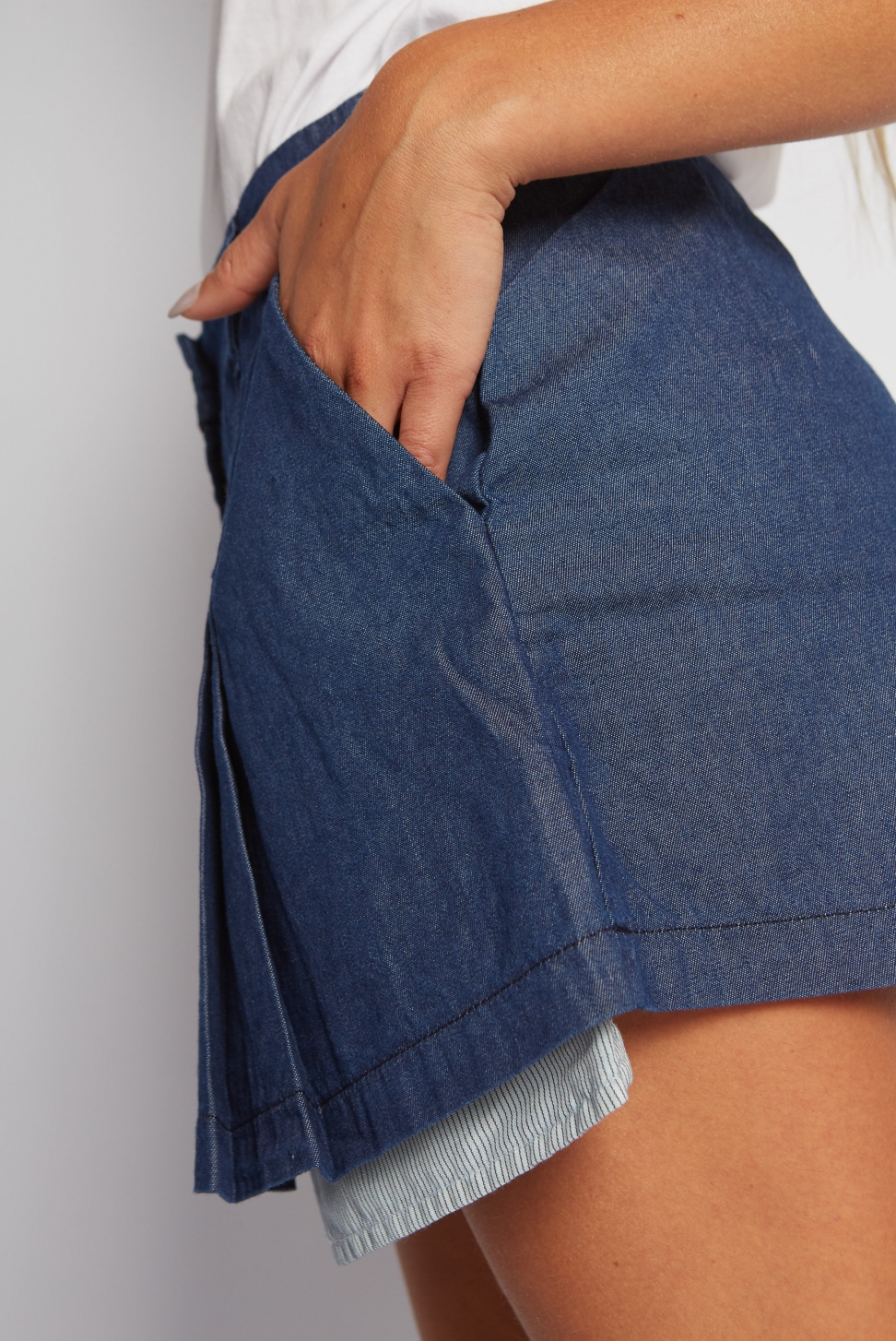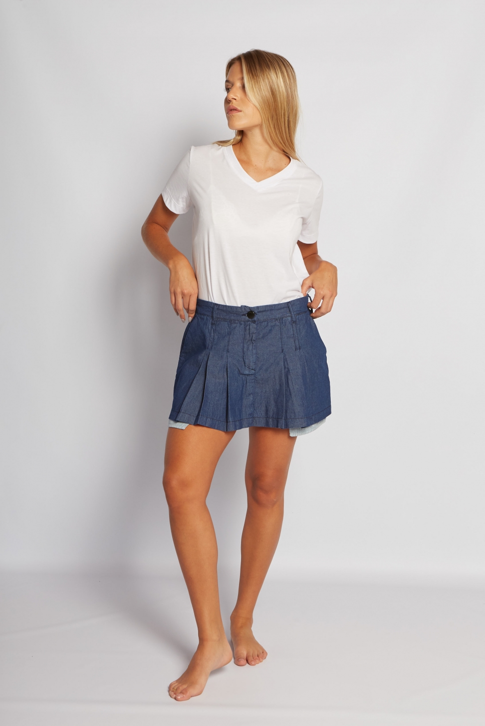Falda con tablas. Confeccionada en 100% algodón ultra liviano.